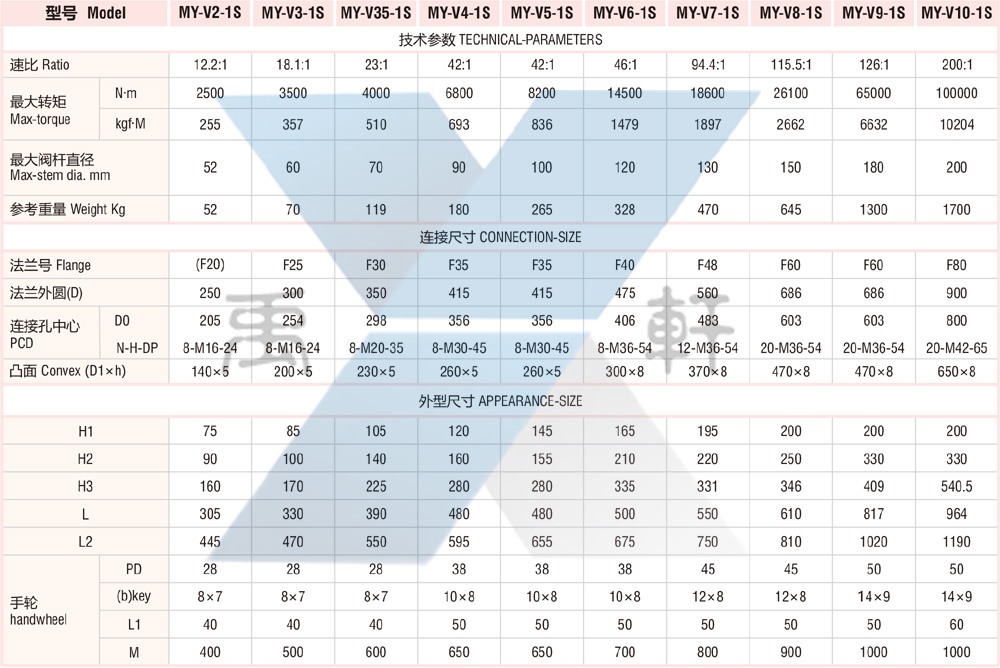 MY-V5-1S傘齒輪技術(shù)參數(shù)-連接尺寸-外形尺寸