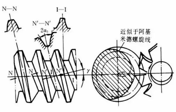 蝸桿齒面為漸開螺旋面,端面齒廓為漸開線。